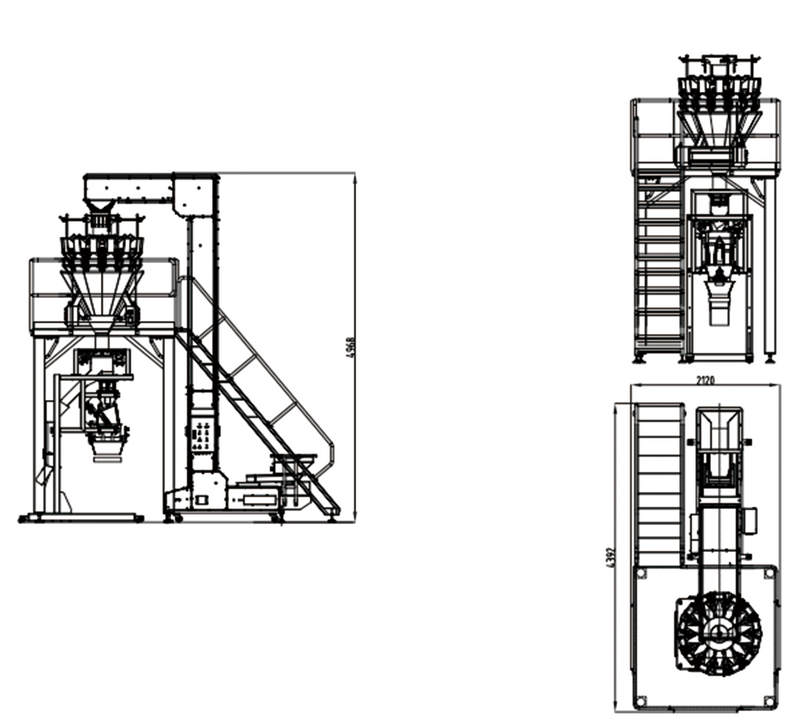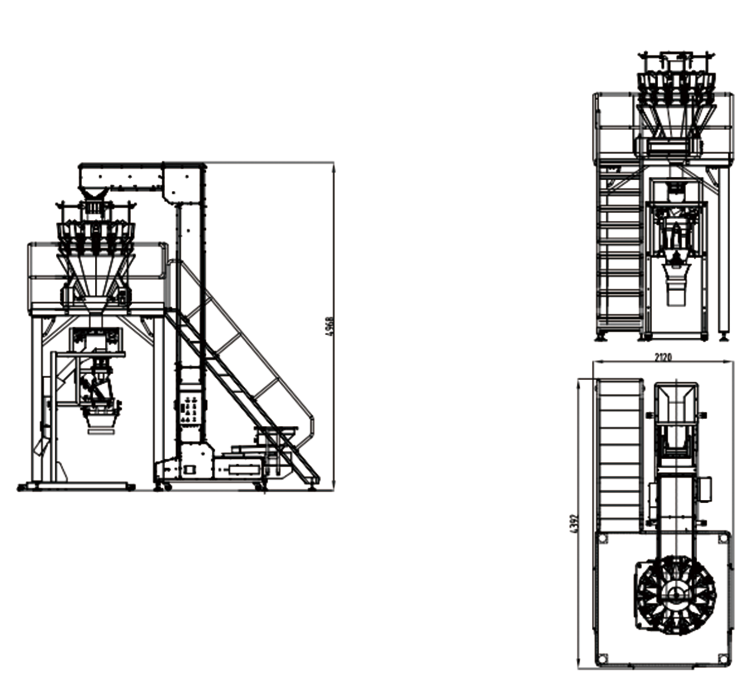 ·The puffed product is fed into the hopper of the Z-type elevator, which gently lifts the product to the upper feeding hopper of the 14-head multihead weigher; the multihead weigher completes high-precision quantitative weighing of the product according to the set parameters.