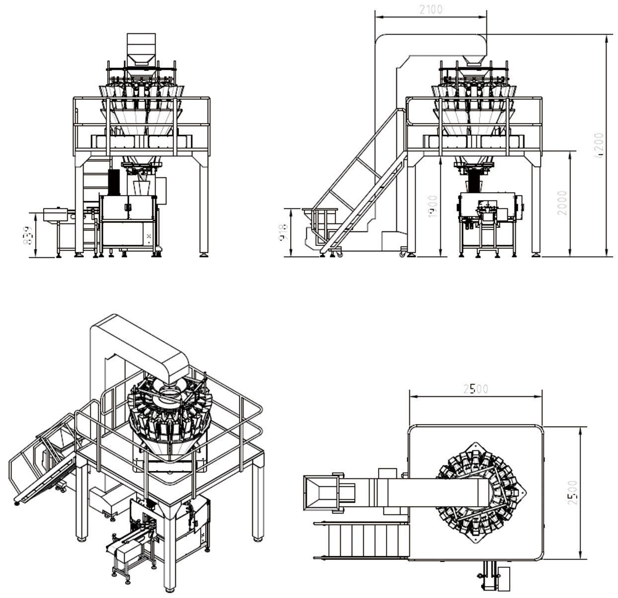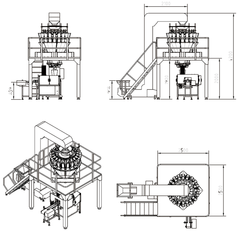 ·Food-grade Supporting Platform: Stable 304 stainless steel ergonomic working platform, providing secure support for the multihead weigher, and easy access for daily operation, cleaning and maintenance