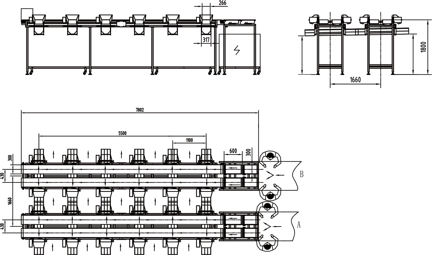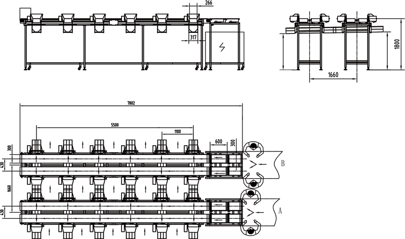 ·Adjustable Graded Collection DeviceHeight, left and right adjustable collection devices are installed under both Lane A and Lane B, supporting collection of live fish from Lane A towards Lane B direction. The quick-disassembly and quick-fix structure greatly facilitates fish collection, equipment cleaning and workshop layout optimization.