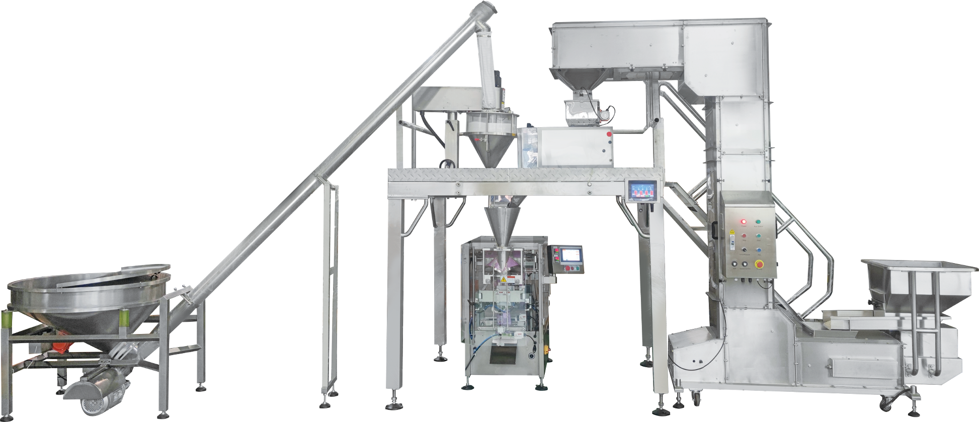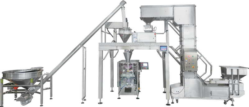 Integrated Granules & Powder Mixture Weighing and Packaging System | Multi-Material Flexible VFFS Packaging Line
