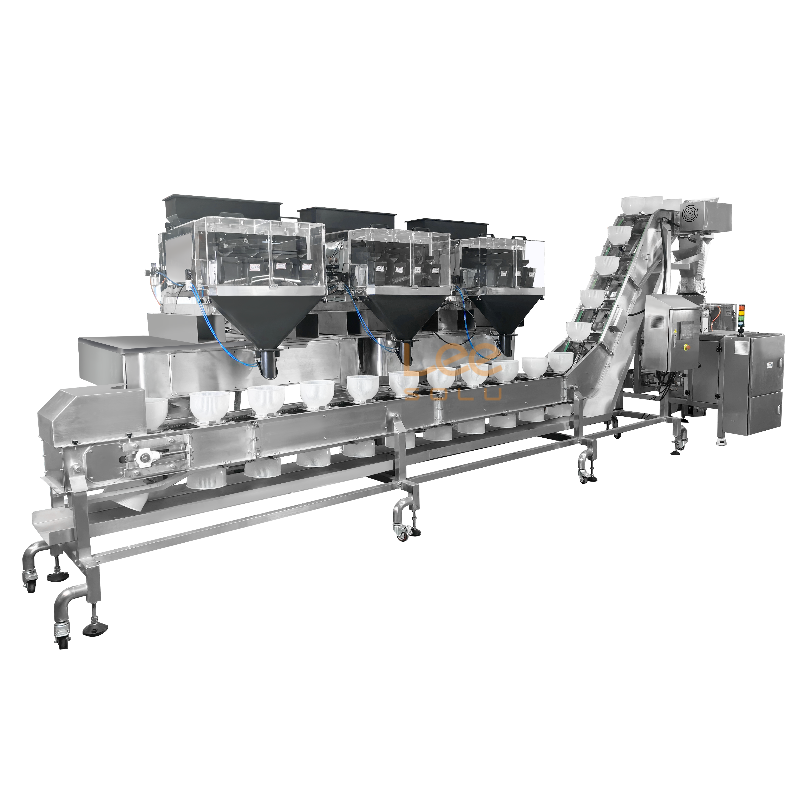 ·14-Head 25-Bucket Combination Multihead WeigherWith a weighing range of 10-1500g, weighing accuracy of ±0.5g, minimum graduation of 0.1g, and maximum weighing speed up to 120bpm. The 2.5L hopper volume adapts to a wide variety of material types. It completes high-precision quantitative combination weighing of coarse grain cereals and pre-blended materials from the 4-head linear weigher, ensuring final formula accuracy and uniform mixing of every single package.
