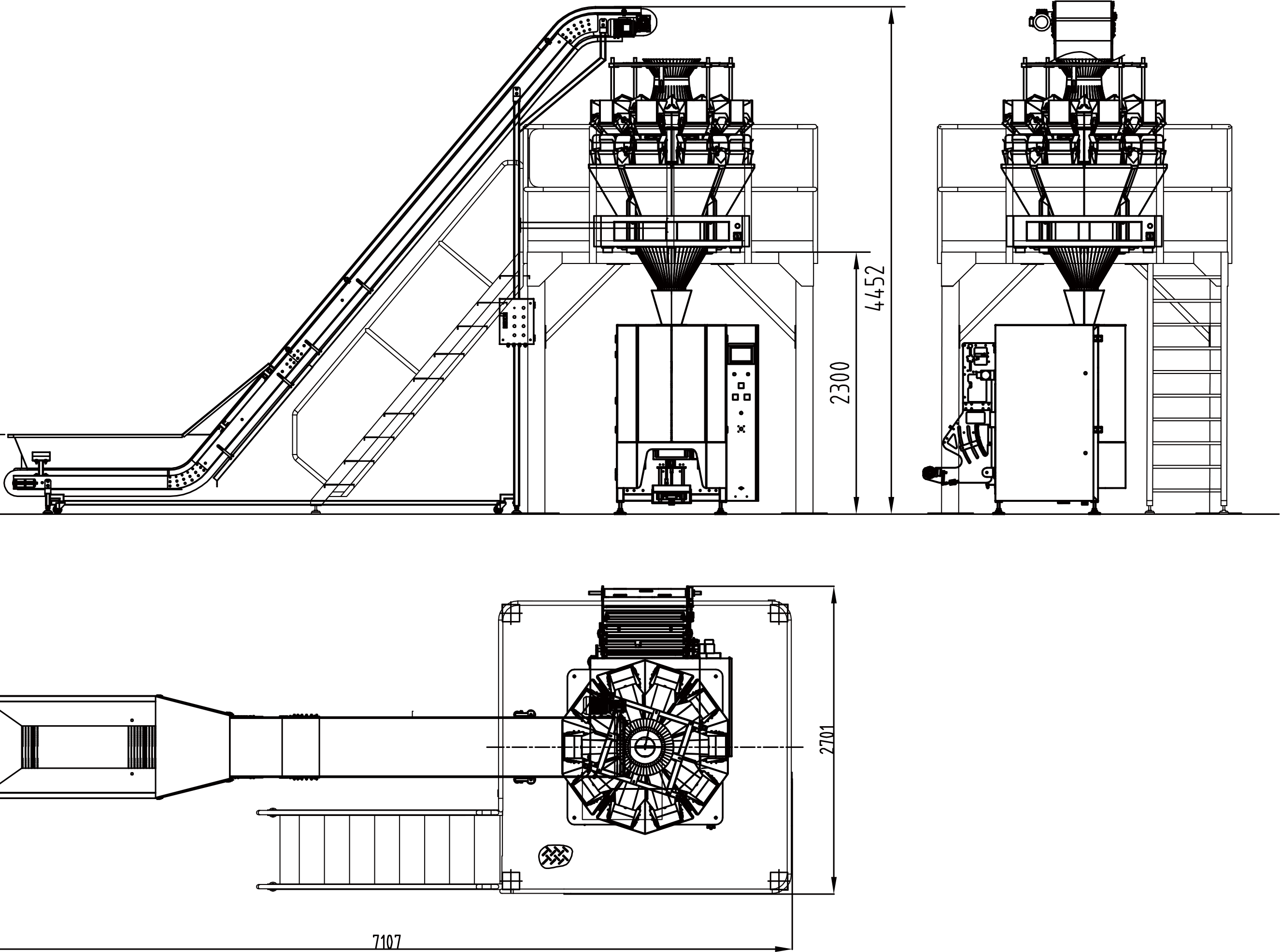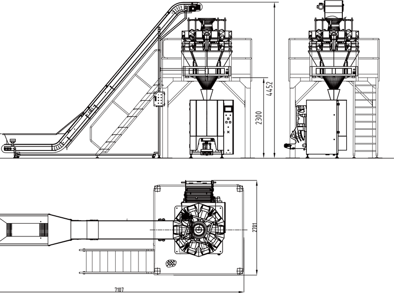 ·The elevator gently lifts the material to the upper feeding hopper of the multihead weigher, with no damage to fragile ingredients