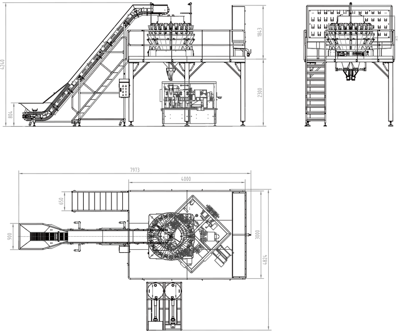 Full heavy-duty food-grade SUS304 stainless steel structure, with anti-slip design and safety guardrails, providing stable installation space for the upper weigher, effectively reducing the impact of vibration on weighing accuracy.