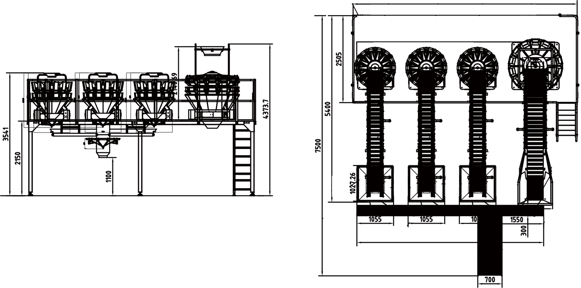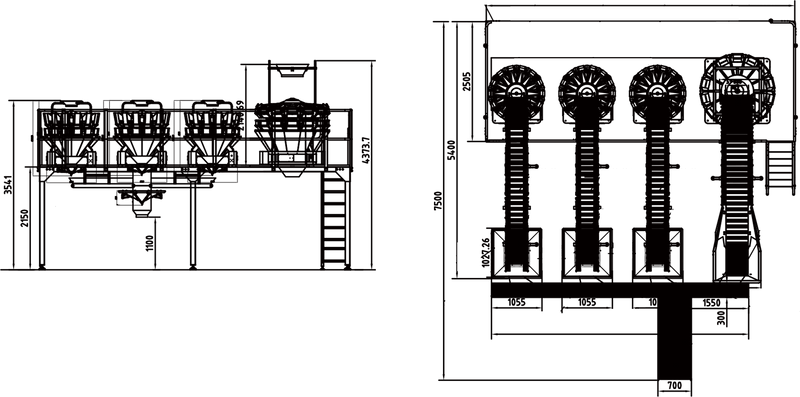 ·Lifting & Precision Weighing: Elevator D lifts the materials into the silo of the 14-head multihead weigher. The weigher completes high-precision combination weighing, and the qualified weighing hoppers wait for discharging.